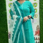 Bring home effortless grace with this three-piece ethnic set in a refreshing aqua green shade. The kurta features a minimal yet elegant geometric print with a round notch neck and 3/4 sleeves. Paired with a matching plazzo and a beautifully coordinated printed dupatta, this ensemble is a must-have for daily ethnic wear, casual gatherings, or traditional occasions.