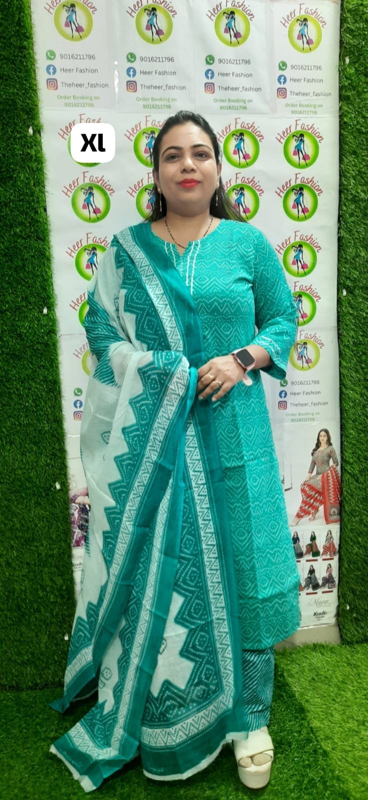Color: Aqua green with white ethnic print