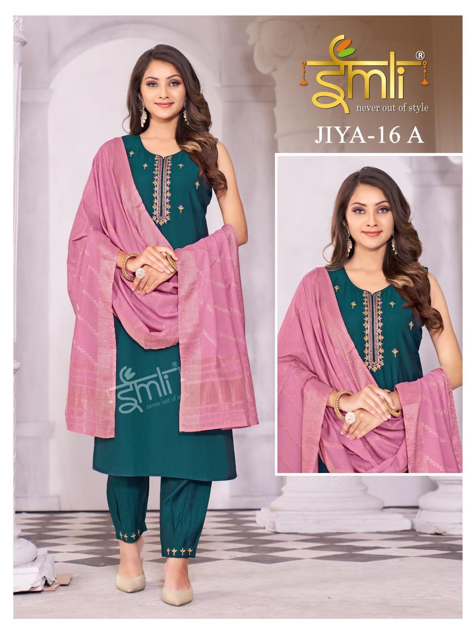 Graceful, minimal, and modern—this 3-piece ethnic set by Imli (JIYA-16 A) is a must-have for the woman who loves classic silhouettes with subtle charm. The deep teal green kurta is beautifully contrasted by a soft mauve-pink dupatta, creating a poised and elegant look that works for both festive and formal wear.