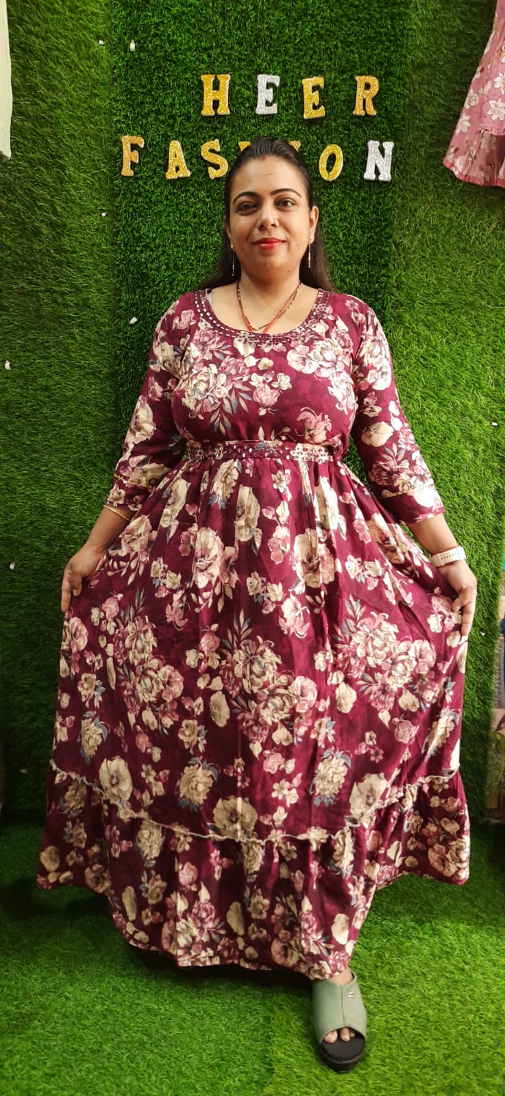 Bring home elegance with Sheer Fashion’s Embellished Floral Gown, available in rich navy blue and regal maroon. Designed to flatter curvy and plus-size silhouettes, this ankle-length gown features full floral prints, bead embellishment at the neckline, and a waist-enhancing band for perfect drape and shape. Ideal for festive, casual, or semi-formal wear, this gown offers both glam and comfort in equal measure.