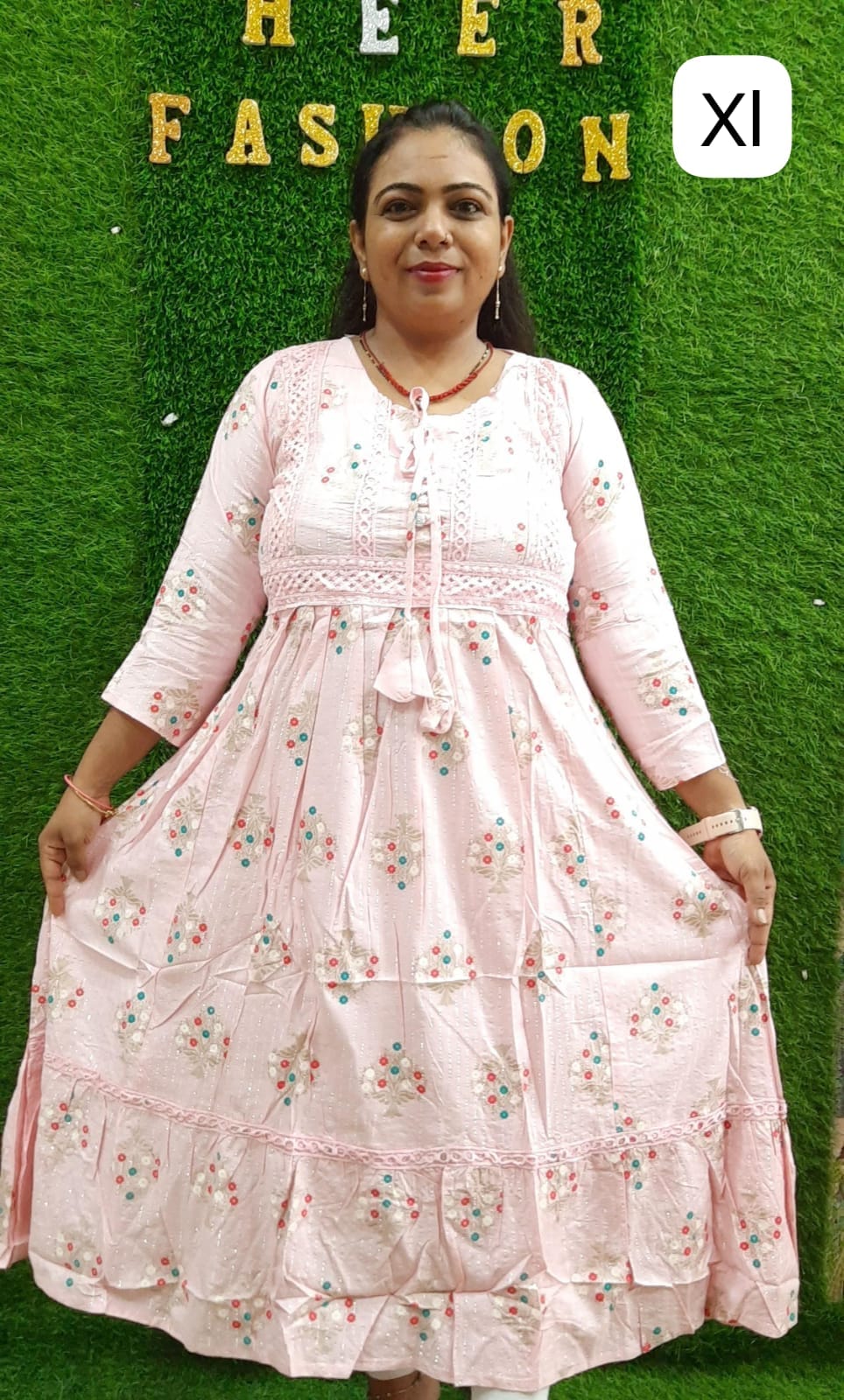 Pastel Pink Floral Embroidered Empire Maxi Dress | XL Size | Tiered Ethnic Wear
