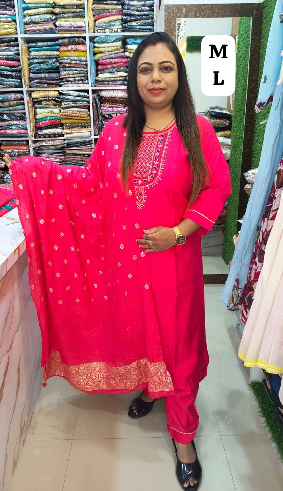 Step into any festive gathering with confidence in this vibrant Rani Pink Cotton Suit Set, adorned with delicate embroidery and a matching dupatta featuring elegant zari work. The soft cotton base keeps it breathable and wearable all day long, while the rich pink hue exudes celebratory charm.