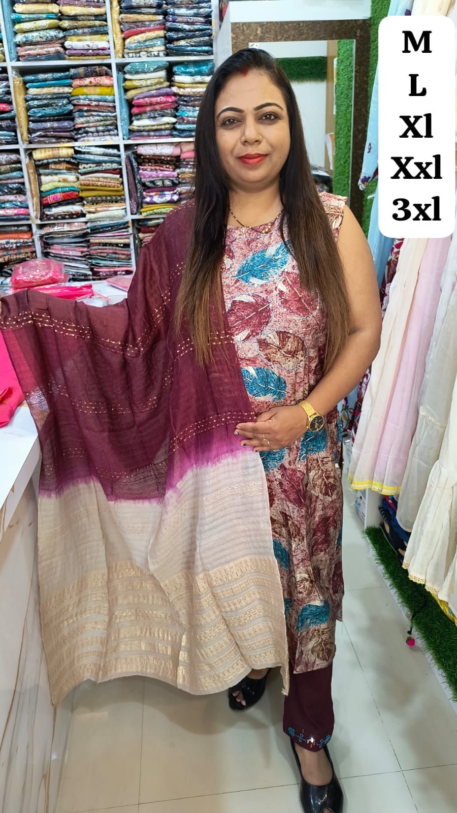 Step into the spotlight with this Maroon Multi-Printed Suit Set, a perfect combination of vibrant prints and rich craftsmanship. The kurta features bold multicolor prints, elevated with heavy sequin and embroidery detailing on the neckline, offering a dazzling yet elegant look.